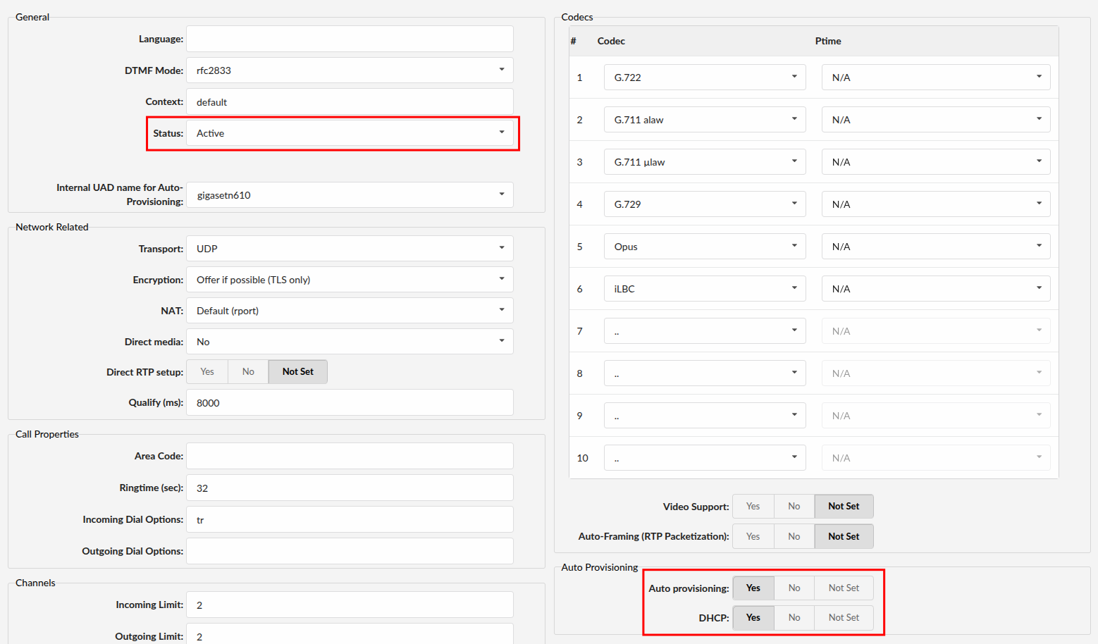 If you want to include additional UAD configuration for the Gigaset N670, add fields to the User Agent General Auto Provisioning Template in the Settings -> UAD -> Gigaset N670 menu, or add them directly to the extension in the UAD Auto Provisioning Template section.